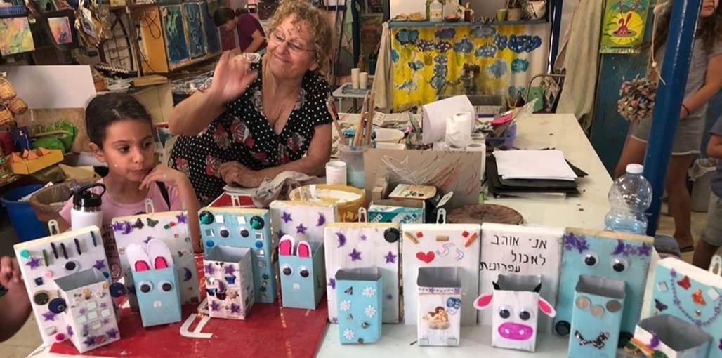 על הקירות וגם בחוץ  ציורים  אורגינליים של בנות המשפחה.