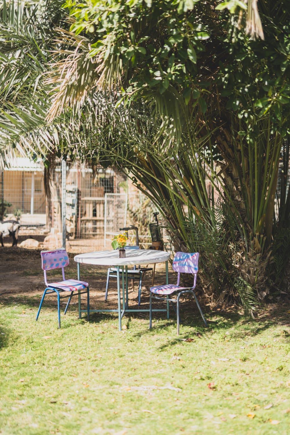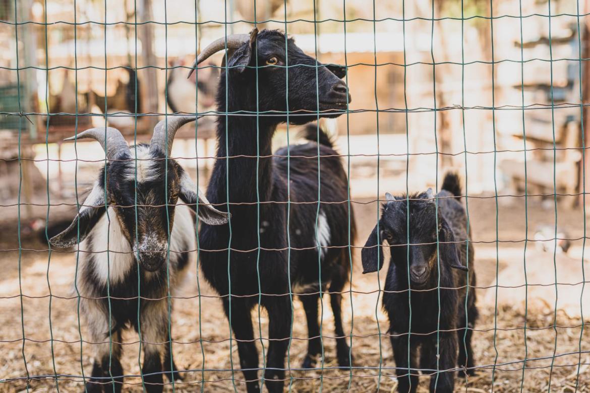 בחצר פינת חי עם שפע חיות. מותר להאכילם ממזון המשפחה.